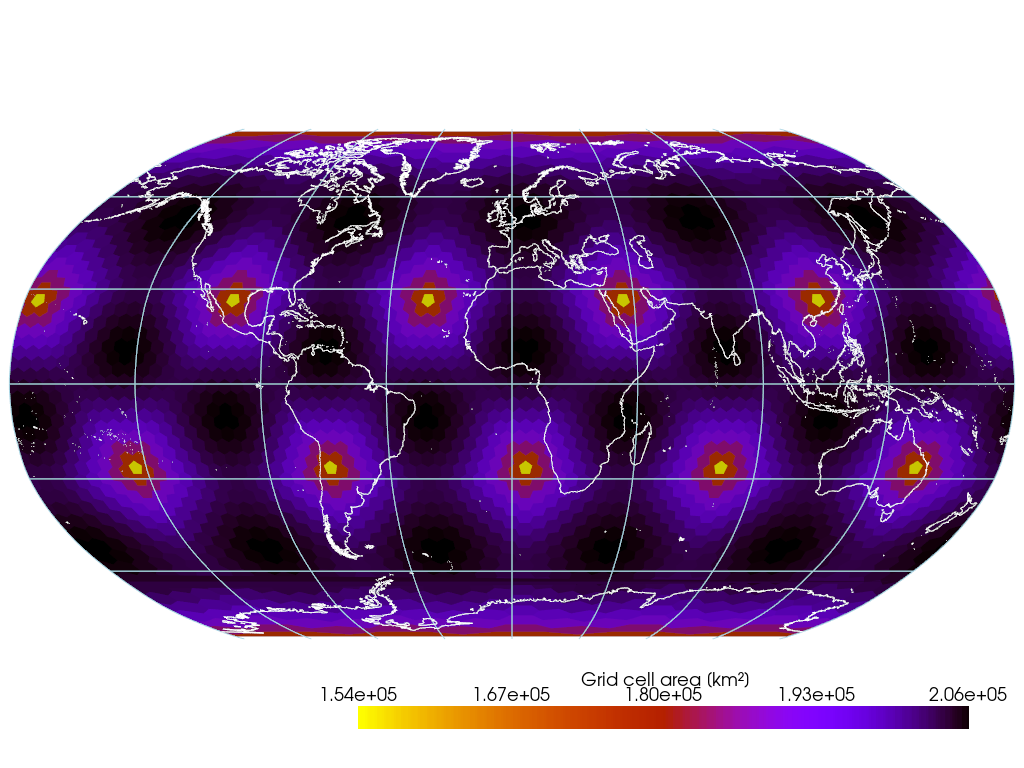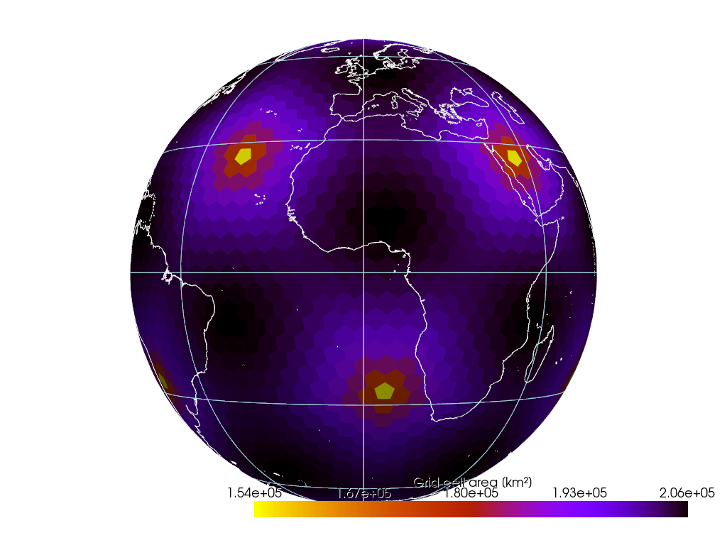 area = g.areaCell * 6371**2 # m2 on unit sphere -> km2 on Earth sphere